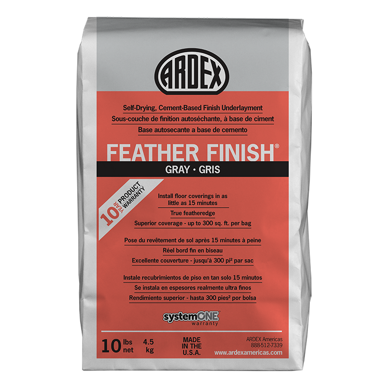 ARDEX FEATHER FINISH® is an underlayment formulated from a blend of Portland cement and other hydraulic cements that provides a smooth, permanent finish for a variety of substrates prior to the installation of today’s demanding floor coverings, including sheet vinyl and VCT (vinyl composition tile).